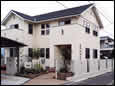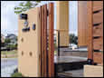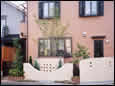 玄関先の小さな空間を、オリジナルデザインの門塀で、コンパクトに仕上げている。門塀は、建物とデザインコーディネイトが出来ており、全体として落ち着いた空間がつくられている。