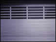 圧迫感が出がちなシャッターではあるが、シャッター上部の採光部と、シンプル&モダンな建物のデザインが相まって、全体が上手く調和している。また、RC打ちっぱなしの壁にステンレス板と照明を組み合わせることで、よりモダンな印象に仕上がっている。