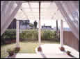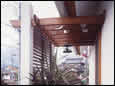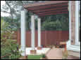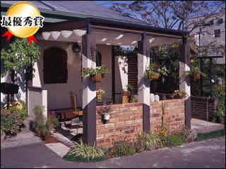 洋風の建物に「グランバトリス」を組み合わせることで、より重厚感のある空間に仕上っている。また、支柱の足元をタイルで装飾して、建物や花壇、外構との統一感を持たせている点など、細部にまで気を配った作品である。
