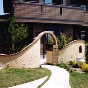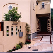 建物外壁と塀の微妙な色加減の調合にこだわりました。