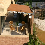 日射を調整できるシェードで快適かつ落着いて過ごせる「屋外のへや」が生まれました。