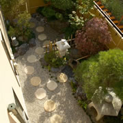 洋風住宅だが、外構を和テイストにし新しいデザイン空間を仕上げた。