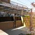 外構に同系色のパレットを施工し、コーディネートした。
