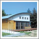建物のアール屋根とデッキのデザインを併せて施工し統一感を出しました。 |
