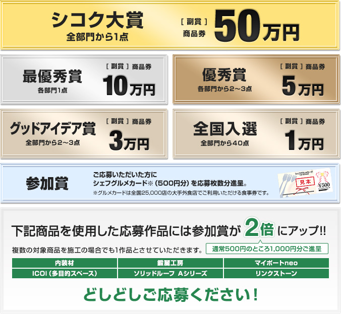 エクステリア商品+外装材・舗装材の作品は、住宅または景観部門への応募となります。