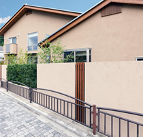 個人住宅・公共施設・店舗・集合住宅などの建物外壁や外塀などに弊社の外装材・舗装材を採用いただいた作品。