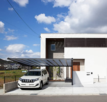 個人住宅の駐車スペースや車庫前に弊社の車庫まわり商品を採用いただいた作品。