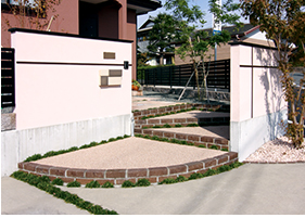 接道部(敷地が道路に接している部分)や隣地境界部など、門柱、門扉、塀や生垣などで敷地の外周をすべてクローズ(閉じる)するスタイルのエクステリア デザイン。近隣を気にせず、庭でプライベートな時間を、ゆっくり過ごしたい場合に有効です。また、安全・防犯対策がとりやすいというメリットもあります。