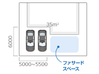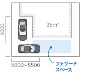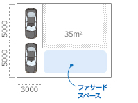 2台目または来客用は、ファサード ゾーンの一部にまたがるカタチで。