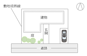住まいづくりにおいてエクステリア計画の前提となるのが、建物の配置を含む敷地全体の利用計画。道路との位置関係や、敷地自体の特徴に応じて、有効なレイアウトを行うための基本的なセオリーを紹介します。