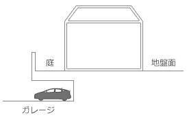敷地内の低い部分に道路がある場合、道路の高さに車庫を設け、車庫の上を庭にするなど、高低差を利用した“二階建てエクステリア”で、敷地を広く使うことができます。