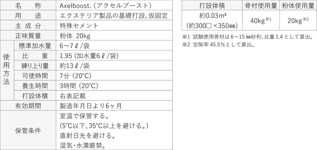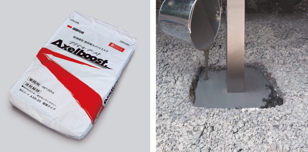 外構工事の省施工・省人化に向けて、超速硬型の無収縮セメントミルク「アクセルブースト」を発売