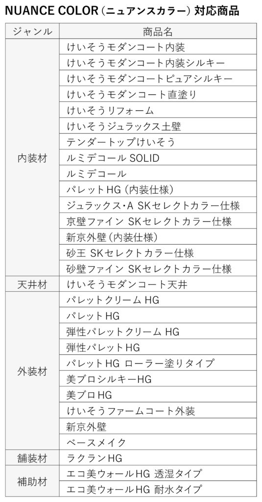 内装材・外装材・舗装材に「NUANCE COLOR(ニュアンスカラー)52色」を発売