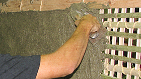 塗り壁とは、下地の上に、土などの素材を、荒塗り、中塗り、上塗りと何層にも塗って仕上げた壁のこと。このうち、最後の「上塗り」を土で仕上げたものが「土壁」、漆喰(しっくい)で仕上げたものが「漆喰壁」です。下地には、もともとは竹木舞下地(たけこまいしたじ)が用いられていましたが、現在は石膏ボードなどが主流です。