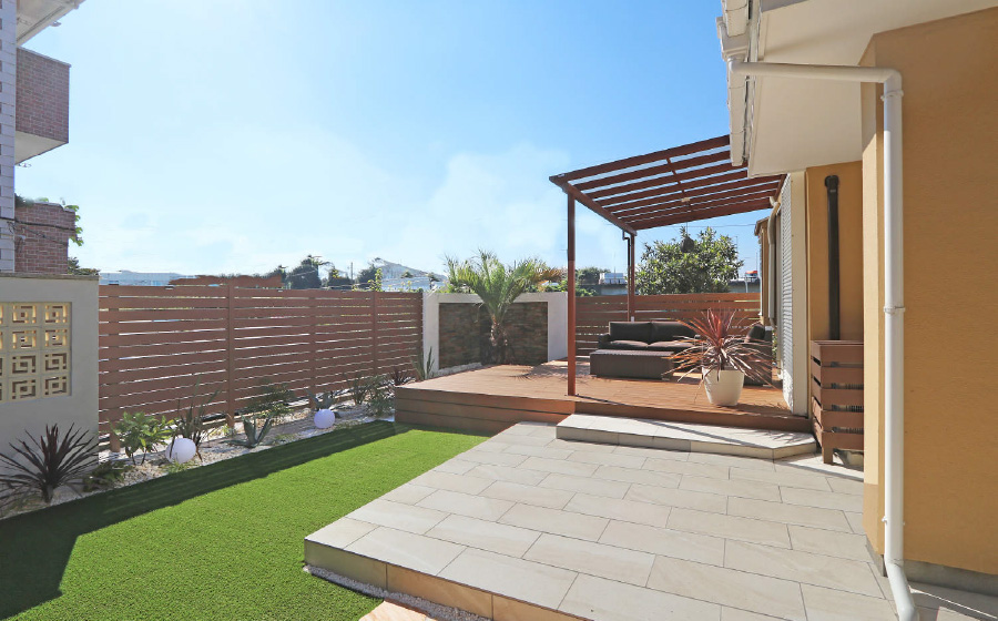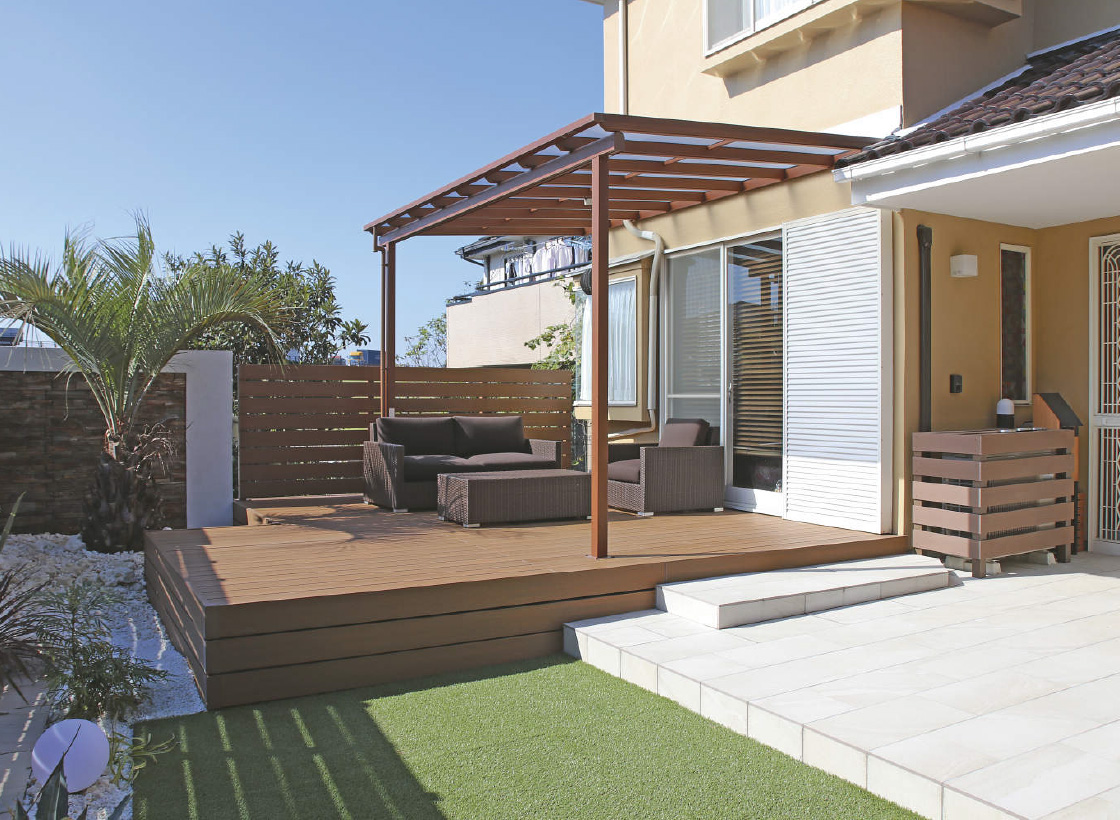 HOME 商品を探す 施工事例 デッキ:ファンデッキHG、フェンス:FDフェンス1型 施工作品コンテスト:2021 年審査員特別賞入選 個人邸 茨城県 つくばみらい市 トロピカルな雰囲気で絵になる空間が出来上がっています。テラス、デッキ、フェンス、人工芝のバランスが良く、調和のとれたまとまり感のある出来栄えは、リビングエクステリアのお手本となる事例です。 採用商品 ファンデッキHG FDフェンス1型 商品を探す 施工作品集